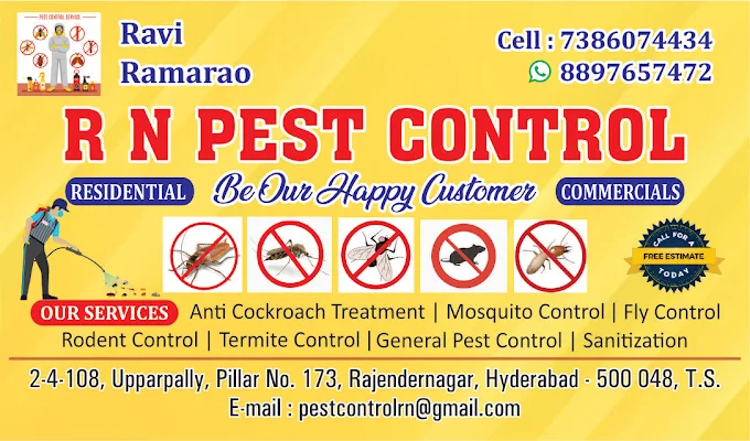 With years of professional experience in pest management, R N Pest Control provides customized solutions for residential and commercial properties across Hyderabad. Our mission is to deliver eco-friendly and long-lasting pest control services that protect your family, home, and workplace.